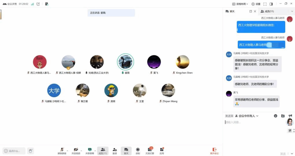 院长翟薇、海外人才项目入选者刘甫教授、沈星辰教授、办公室主任马晓娜,以及7位来自美国、加拿大、沙特阿拉伯、以色列等海外学者线上参会。会议由翟薇院长主持。